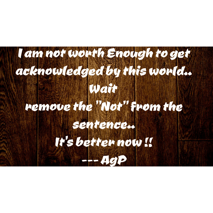 We need to be “AWARE” of what we talk to ourselves.. Most of the time, GOD gives us an opportunity, and what we do is think,”Am i worthy enough to do this or that”.. And we get lost from the path..